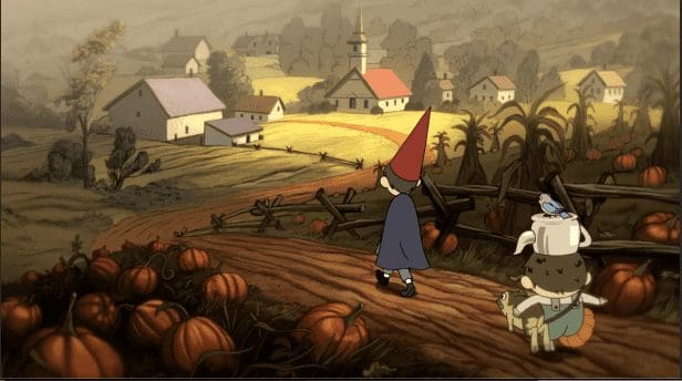 For those unfamiliar, Over the Garden Wall is an American animated television series created by Patrick McHale and it first aired in 2014. Since its original broadcast on Cartoon Network, the show has continued to be an autumn staple for many families and lovers of fall. Why? Because while it has a fairytale atmosphere, it balances out the spookiness of the fall season without being overtly scary. It makes homages to the nostalgic art of the 19th and 20th century.